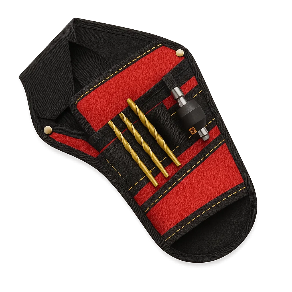 - Posee un diseño ajustado y equilibrado con una parte inferior abierta que sostiene tu taladro o destornillador de forma segura mientras que permite que entre y salga sin engancharse.