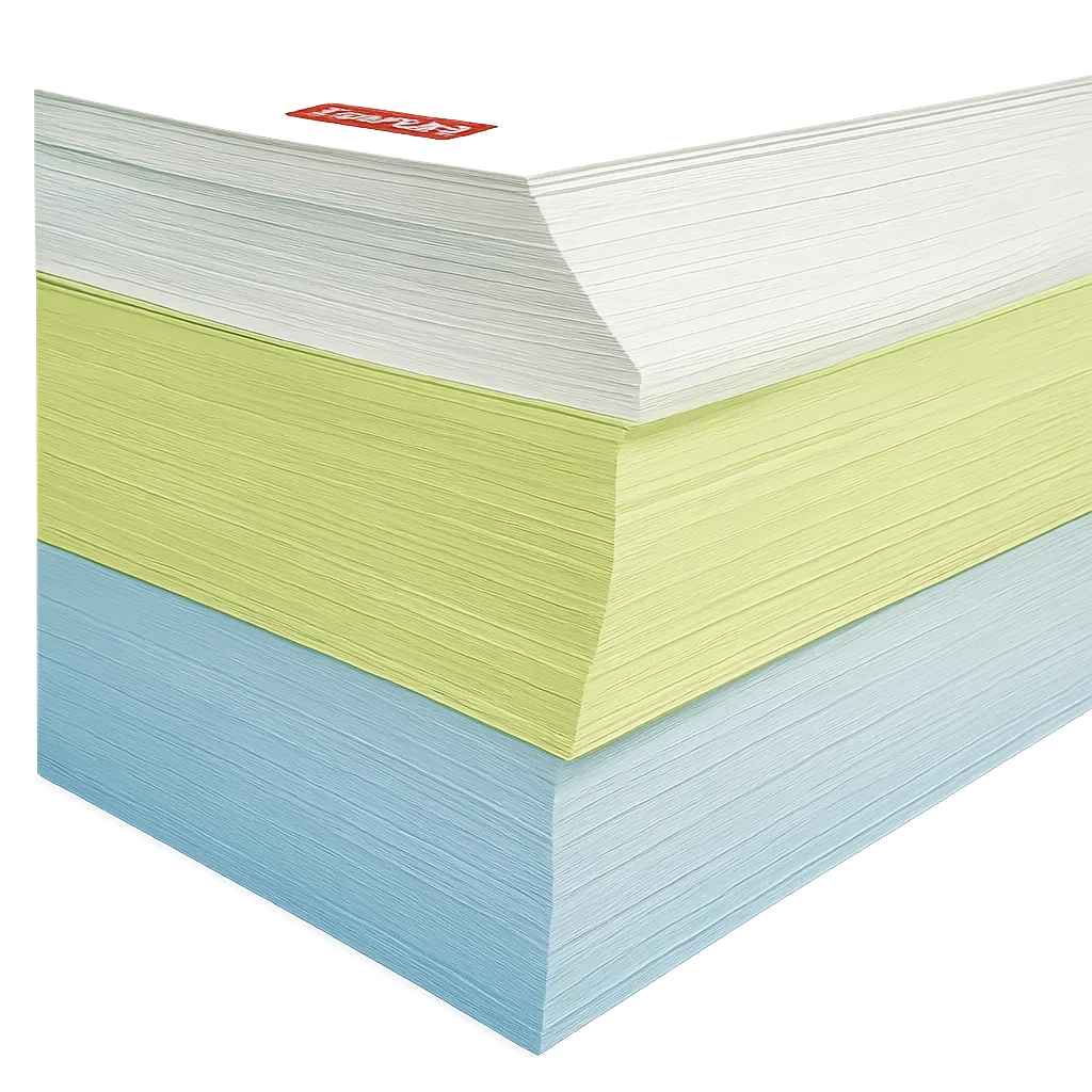 Comercializamos nuestro producto en packs de 500 hojas en colores blanco como primera capa, y rosa y amarillo para segunda y terceras.