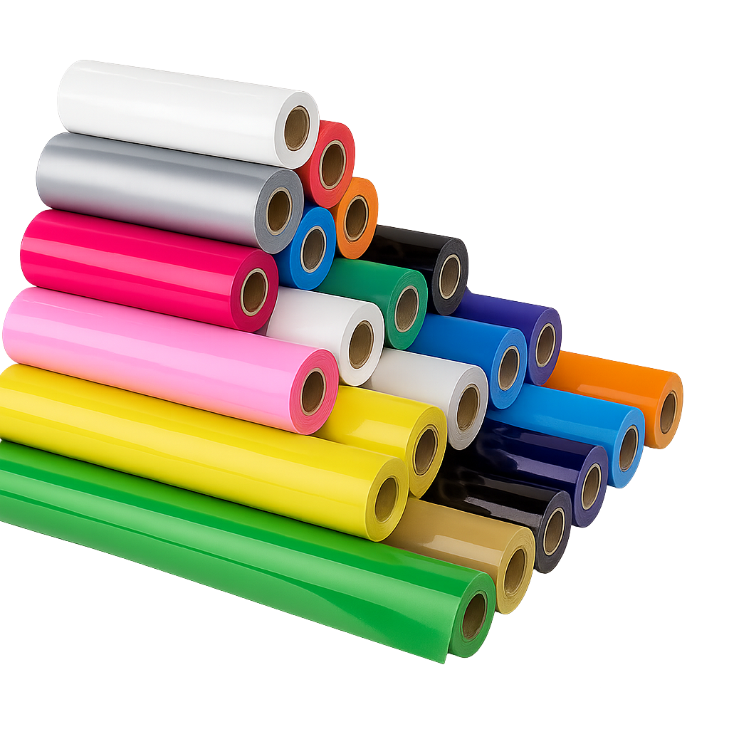 Bobinas de Vinilo de Corte Polimérico Uviprint 610mm de ancho, disponible  en diversos colores. Los colores blanco, negro, oro y plata, disponibles en bobinas de 50 metros, y las de colores en bobinas de 8 metros.